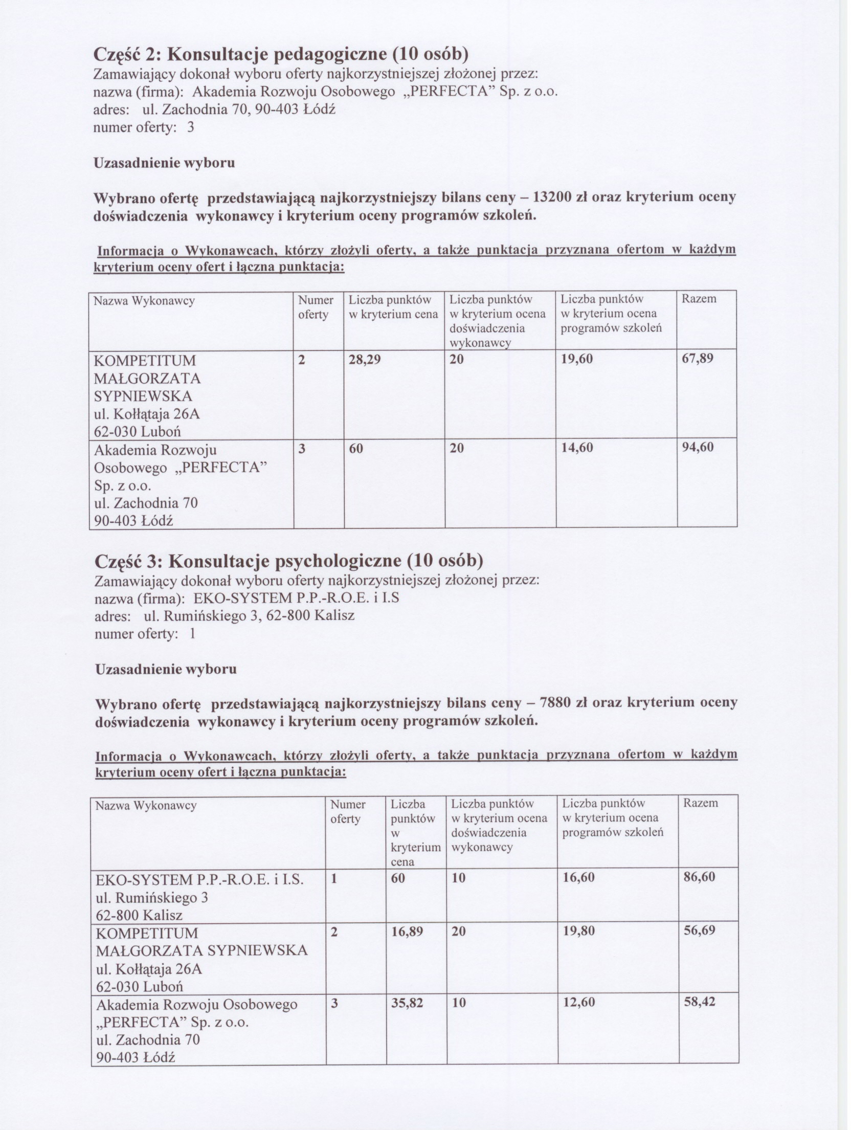 CZĘŚĆ Nr: 2 NAZWA: konsultacje pedagogiczne.