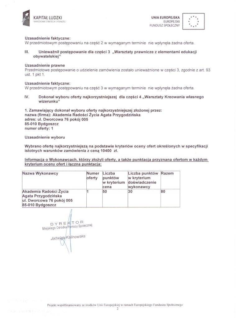 Inowrocław: Usługi szkolenia polegające na zorganizowaniu i przeprowadzeniu szkoleń dla osób uczestniczących w projekcie Aktywność się opłaca realizowanym w ramach Programu Operacyjnego Kapitał Ludzki, Priorytet VII Promocja integracji społecznej, Działanie 7.1. Rozwój i upowszechnienie aktywnej integracji, Poddziałanie 7.1.1 Rozwój i upowszechnianie aktywnej integracji przez ośrodki pomocy społecznej – MOPS.921-9215-7/2011. Numer ogłoszenia: 281819 - 2011; data zamieszczenia: 27.10.2011 OGŁOSZENIE O ZAMÓWIENIU - usługi